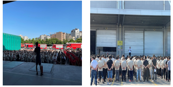 2021年7月14日廈門總部生產(chǎn)基地組織二、三期員工進(jìn)行消防疏散演練,總指揮一聲令下演練開始,制二課車間報(bào)告火情,請求疏散和滅火支援,總指揮接到報(bào)告...